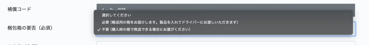 ちなみに購入時の箱がそのまま取ってあったのと、集荷時に手間取らないようにするために梱包箱の要否は不要を選択しました。