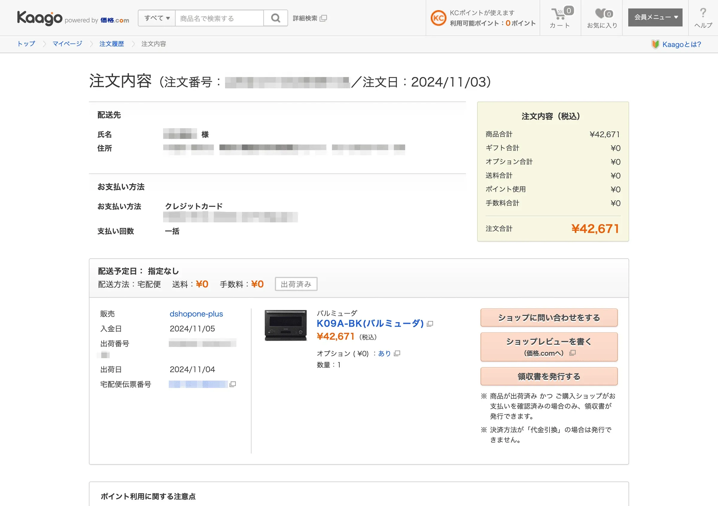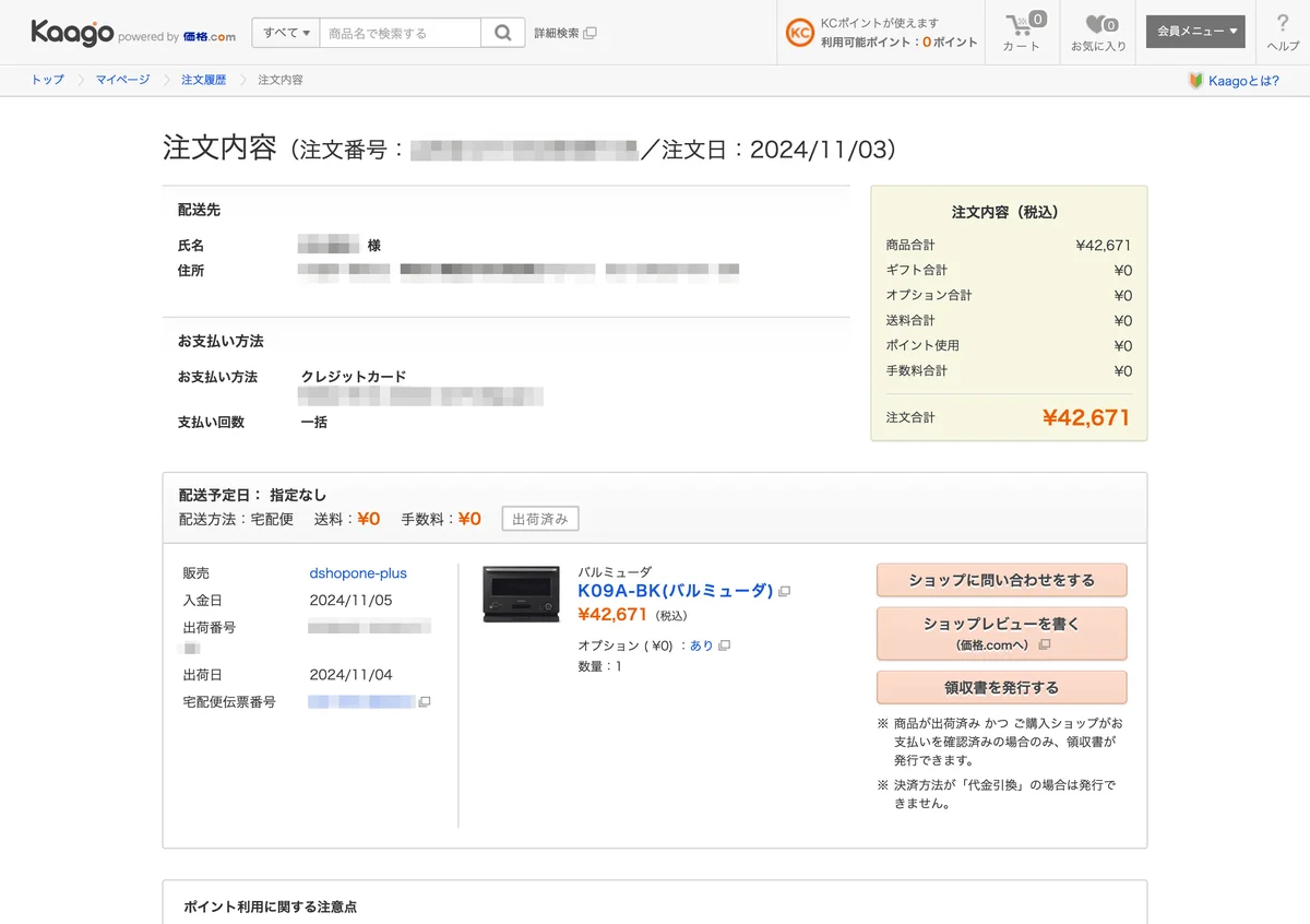 参考までに今回はこのようなオンラインショップの注文履歴のスクショを添付しました☝️