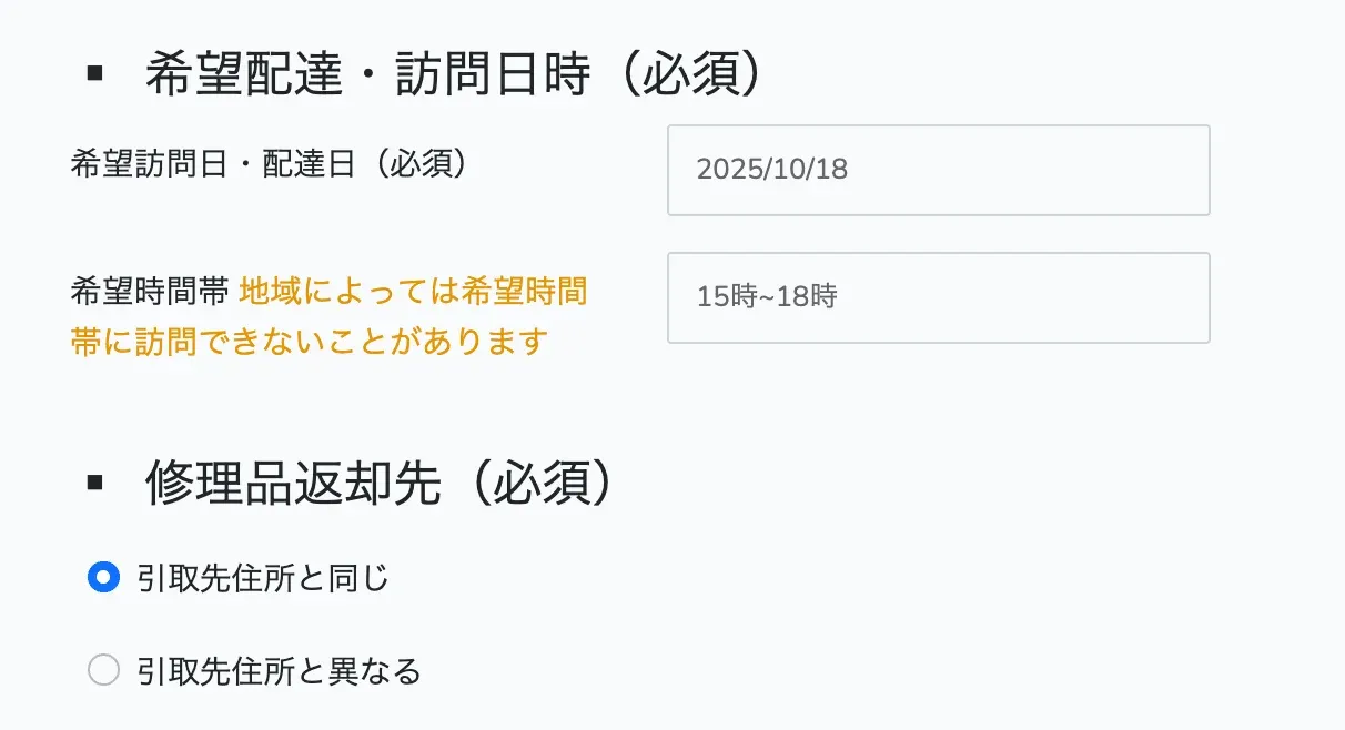 とのことだったので「原因が明確なら保証修理の対象になりそう」と思い、思い切って修理申し込みしてみることにしました。